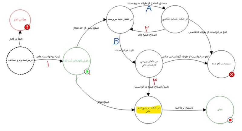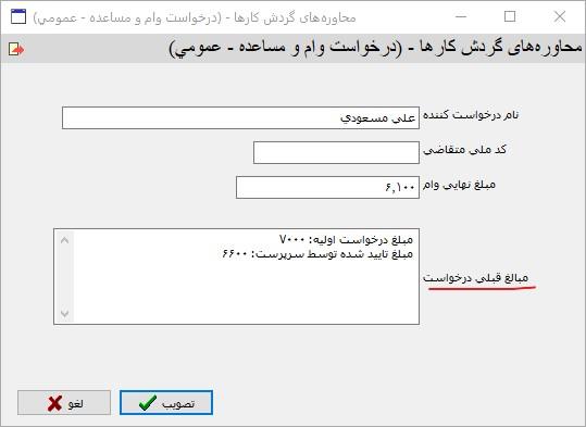 روال ثبت و تغییر مبلغ وام درخواستی در این گردش کار به شرح زیر است:
