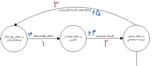 در این قسمت، ابتدا کارشناس تراکنش 1 ) رفع اشکال) را انجام می دهد، سپس در تراکنش 2، مشتری فیدبک خود را اعلام می کند و پس از آن، سرپرست پشتیبانی بسته به فیدبک مشتری، و میزان تکمیل کار، تصمیم می گیرد کار را خاتمه دهد یا اینکه در تراکنش 3 برای رفع نواقص، مجددا به کارشناس برگرداند. بدیهی است که این چرخه، تا رضایت کامل مشتری و سرپرست ممکن است چند بار تکرار شود و در هر تکرار این حلقه، فیلدهای زیر مقداردهی شوند: