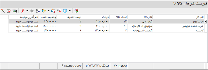از این پس هرگاه روی این گزارش خلاصه وضعیت، دبل کلیک کنید فهرست کارها به شکل زیر نمایش داده می شود: