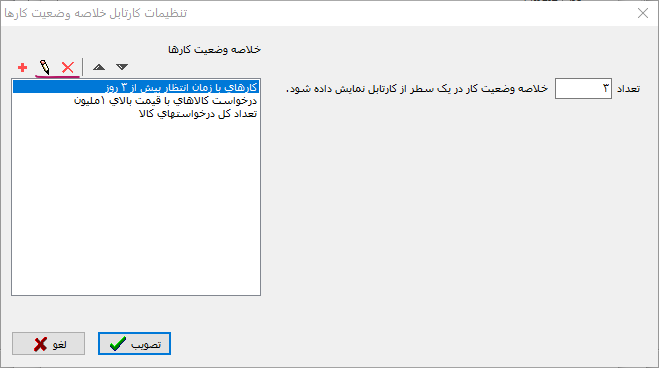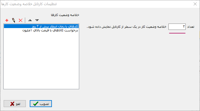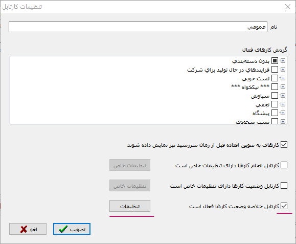 تنظیمات کارتابل خلاصه وضعیت کارها