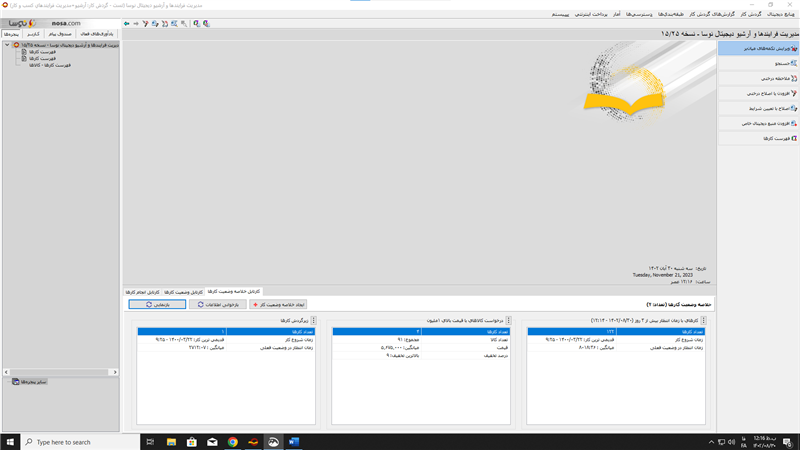 گزارشهای خلاصه وضعیت کارها در ناحیه کارتابل هم به شکل عرضی و هم به شکل طولی تمام ناحیه را در برمی گیرند. حال اگر سایز کارتابل به هر دلیل تغییر کند، سایز خلاصه وضعیتها بطور خودکار با سایز جدید منطبق نمی شود. برای نمونه به شکل زیر دقت کنید: