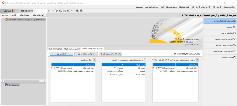 یکی از گزارشهای خیلی پرکاربرد در سیستم مدیریت فرایندها، فهرست کارها می باشد. در فهرست کارها امکان انجام وظایف و نیز امور مدیریتی مانند تعلیق یا عدم تعلیق کارها، ارسال پیام دستی، تعیین کاربران مجازی دستی و ... وجود دارد. حال فرض کنید شخصی با فهرست کارهای مختلف با تنظیمات متفاوت سروکار دارد بنابراین باید بطور مرتب فهرستهای مختلف با شرایط و تنظیمات مرتبط با آن را باز کند و کار مورد نظر خود را انجام دهد. در این موارد بهتر است فهرست کارهای پرکاربرد را در دسترس کاربران قرار دهیم. برای رفع این نیاز، در روند توسعه سیستم و در مراحل مختلف امکانات زیر پیاده سازی شده است: