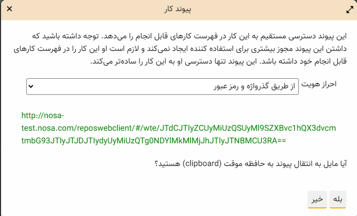 حال پس از تعیین نوع احراز هویت، می توانید لینک این وظیفه را در صفحه مورد نظر خود embed کنید.