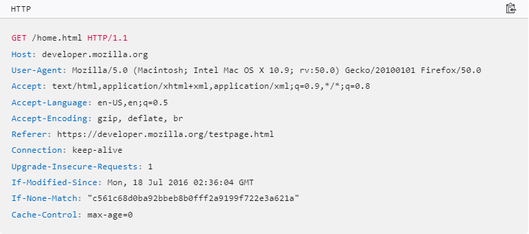 یک نمونه از درخواست GET در شکل زیر نمایش داده شده است. در این مثال، سطرهای مربوط به هدر را پس از دستور GET مشاهده می کنید: