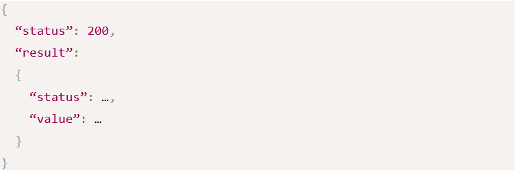 همانطور که می بینید، متغیر res دارای یک مشخصه وضعیت (status) است که کد وضعیت پاسخ را برمی گرداند. کد 200 به معنی صحیح و معتبر بودن ساختار پاسخ است. در این حالت پاسخ شامل یک مشخصه دیگر بنام result شامل مشخصه value خواهد بود که متن پاسخ دریافت شده (در اینجا مقدار مانده اعتبار کاربر) است. در غیر این صورت اگر کد وضعیت هر عدد دیگری غیر از 200 باشد به معنی نامعتبر بودن پاسخ است که در این حالت ساختار پاسخ به شکل زیر است: