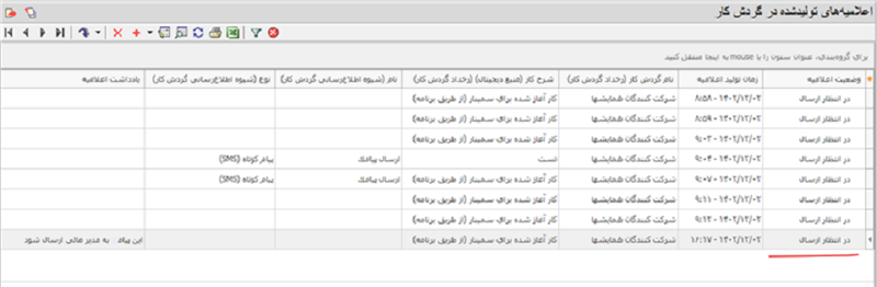 ملاحظه می کنید که در اینجا ادمین سیستم مطمئن نیست که اولا مدیر مالی شرکت کیست و دوم این که شیوه اطلاع رسانی به این شخص کدام است. حال به این اعلامیه در فهرست اعلامیه های تولید شده در گردش کار توجه کنید: