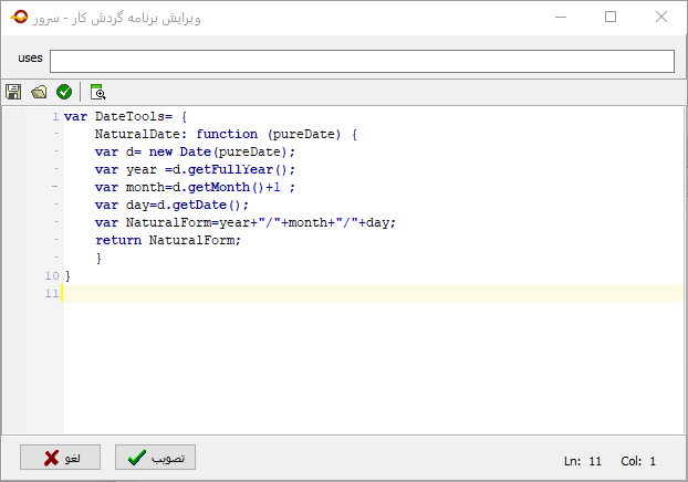 ملاحظه می کنید که در این حالت دیگر نیازی به تعریف تابع NaturalDate در کتابخانه ها نیست و در هر کتابخانه ای که نیاز به تبدیل فرمت تاریخ دارید، می توانید این تابع را از کتابخانه DateTools صدا بزنید.