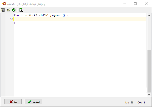 حال در ناحیه محاسبه مقدار، دبل کلیک می کنیم تا یک تابع محاسباتی (در کلاینت) بطور اتوماتیک و به شکل زیر ایجاد شود: