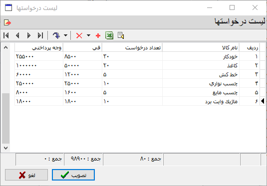 مثال: محاسبه وجه پرداختی در لیست درخواست کالاها