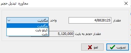 کیک کرده و حجم مورد نظر خود را به همراه واحد آن مشخص کنید.