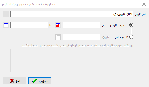 با این کار، محاوره حذف عدم حضورهای روزانه کاربر به شکل زیر باز می شود: