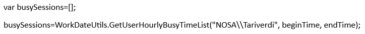 مثال 6: در مثال مربوط به ثبت جلسه کاری (مثال 3) ، بررسی وضعیت عدم حضور ساعتی کاربر را اضافه می کنیم. در این صورت، تابع اجرایی WorkTaskSetHourlyBusyTime به شکل زیر تغییر می کند: