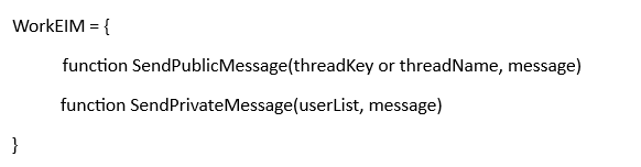 همانطور که ملاحظه می کنید این موجود دارای دو تابع است که تابع SendPublicMessage برای ارسال پیامهای عمومی و تابع SendPrivateMessage برای ارسال پیامهای خصوصی است. در ادامه مطلب، این توابع به ترتیب و با ذکر مثال شرح داده شده است.