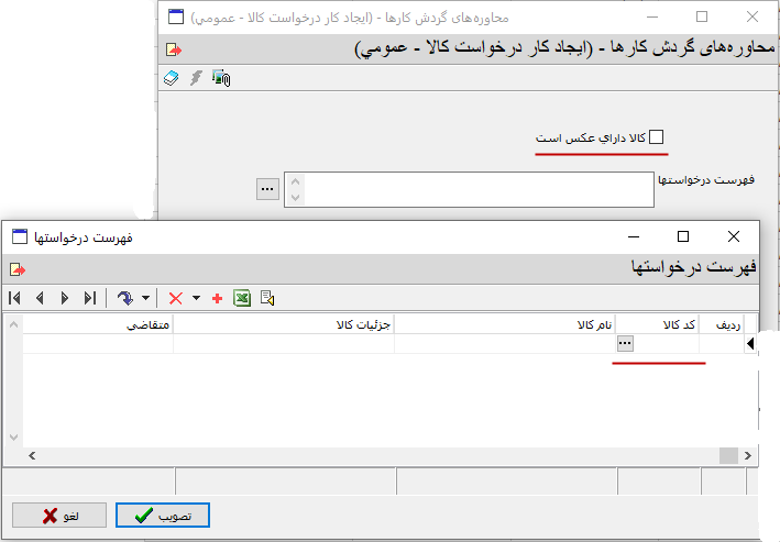 فرض کنید در یک گردش کار درخواست کالاها، فهرست کالاها در یک فیلد انتخابگر حرفی نمایش داده می شود. حال فرض کنید می خواهیم تنها کالاهای عکس دار نمایش داده شود. برای این کار تابع جستجو به شکل زیر است:
