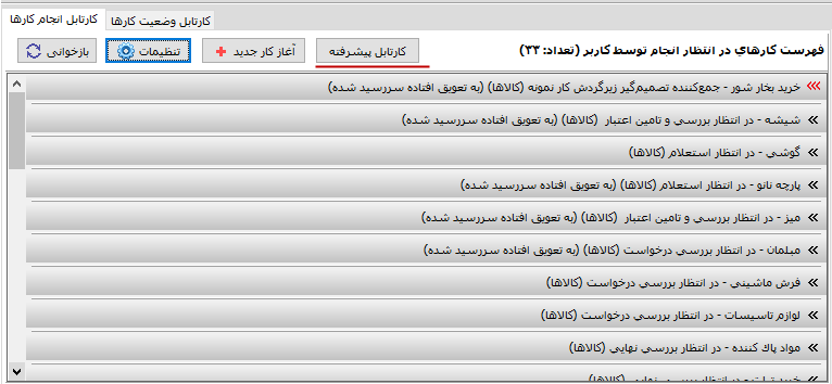 با کلیک روی این تکمه، کارتابل پیشرفته به شکل زیر روی صفحه باز می شود: