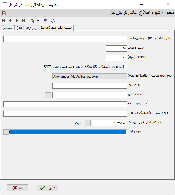 تنظیمات برگه پست الکترونیک (Email)
