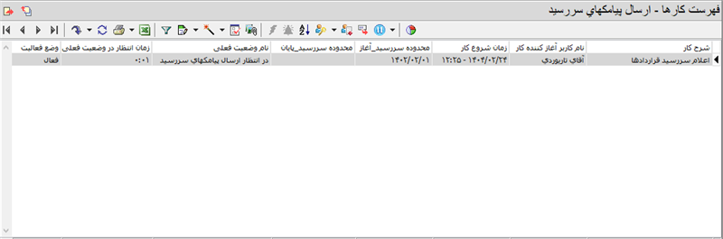 روشی که تاکنون برای این نوع از کارها انجام می شد این بود که معمولا یک گردش کار خاص برای این کار ایجاد می شد و در این گردش کار معمولا فقط یک کار تعریف می شد که بصورت دائمی در کارتابل موجود بود. کاربران نیز در مواقع مقتضی، برای انجام وظیفه یا عملیات خاص به این کار مراجعه می کردند. برای مثال به فهرست کارهای گردش کار «ارسال پیامکهای سررسید قراردادها» توجه کنید: