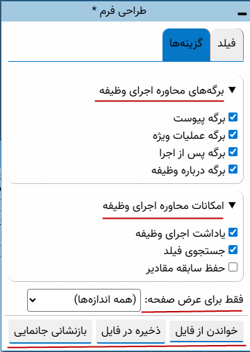 نکته مهم: مبنای این مقاله فرمهای انجام وظیفه است و از آنجایی که فرمهای عمومی نیز قابلیت استفاده برای انجام وظیفه را دارند لذا این تنظیمات برای هر دو نوع فرم انجام و اعمال می شود.